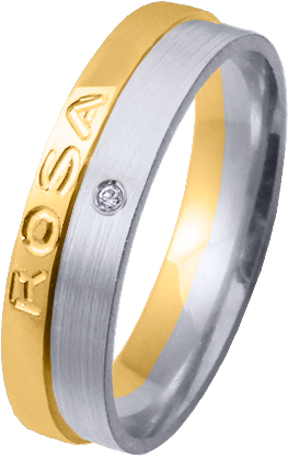 ALIANZA MATRIMONIO ORO BICOLOR PULIDA Y MATIZADA FRANJA LATERAL PERFIL PLANO NOMBRE