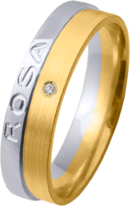 ALIANZA MATRIMONIO ORO BICOLOR PULIDA Y MATIZADA FRANJA LATERAL PERFIL PLANO NOMBRE