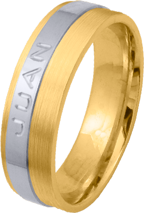 ALIANZA MATRIMONIO ORO BICOLOR PULIDA Y MATIZADA FRANJA LATERAL PERFIL PLANO CON NOMBRE