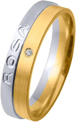 ALIANZA MATRIMONIO ORO BICOLOR PULIDA Y MATIZADA FRANJA LATERAL PERFIL PLANO NOMBRE