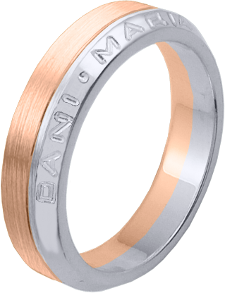 ALIANZA MATRIMONIO ORO BICOLOR PULIDA Y MATIZADA CON GRABACION NOMBRES EN LATERAL ANILLO