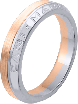 ALIANZA MATRIMONIO ORO BICOLOR PULIDA Y MATIZADA CON GRABACION NOMBRES EN LATERAL ANILLO