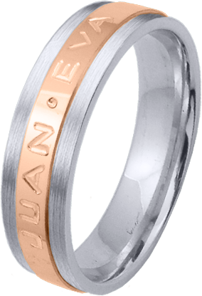 ALIANZA MATRIMONIO ORO BICOLOR PULIDA Y MATIZADA FRANJA CENTRAL PERFIL PLANO CON NOMBRES