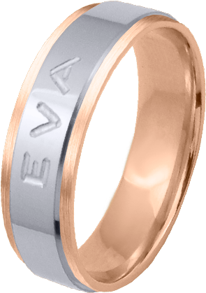 ALIANZA MATRIMONIO ORO BICOLOR PULIDA Y MATIZADA FRANJA ANCHA CENTRAL PERFIL PLANO NOMBRE