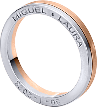ALIANZA MATRIMONIO ORO BICOLOR PULIDA Y MATIZADA CON GRABACION NOMBRES EN LATERAL ANILLO
