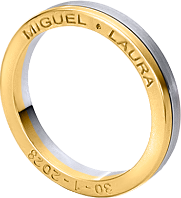 ALIANZA MATRIMONIO ORO BICOLOR PULIDA Y MATIZADA CON GRABACION NOMBRES EN LATERAL ANILLO