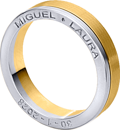 ALIANZA MATRIMONIO ORO BICOLOR PULIDA Y MATIZADA CON GRABACION NOMBRES EN LATERAL ANILLO
