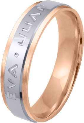 ALIANZA MATRIMONIO ORO BICOLOR PULIDA Y MATIZADA FRANJA ANCHA CENTRAL PERFIL PLANO NOMBRES