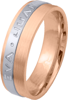 ALIANZA MATRIMONIO ORO BICOLOR PULIDA Y MATIZADA FRANJA LATERAL PERFIL PLANO CON NOMBRES