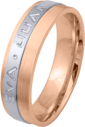 ALIANZA MATRIMONIO ORO BICOLOR PULIDA Y MATIZADA FRANJA LATERAL PERFIL PLANO CON NOMBRES