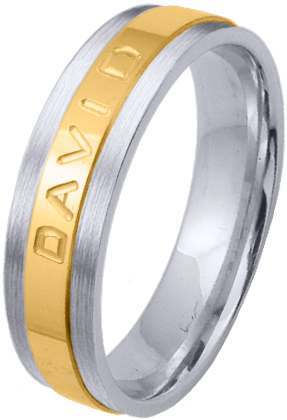 ALIANZA MATRIMONIO ORO BICOLOR PULIDA Y MATIZADA FRANJA CENTRAL PERFIL PLANO CON NOMBRE