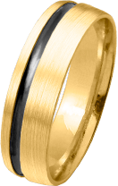 ALIANZA DE BODA DE ORO AMARILLO MATIZADA CON SURCO LATERAL EN RODIO NEGRO PERFIL CAÑA SUAVE