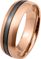 ALIANZA DE BODA DE ORO ROSA Y BANDA EN RODIO NEGRO PERFIL CAÑA SUAVE