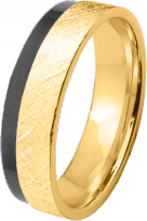 ALIANZA DE BODA DE ORO AMARILLO MATIZADA LATERAL EN RODIO NEGRO PERFIL PLANO