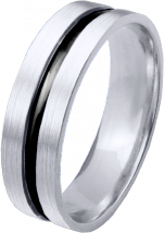 ALIANZA DE BODA DE ORO BLANCO MATIZADA SURCO CENTRAL EN RODIO NEGRO PERFIL PLANO