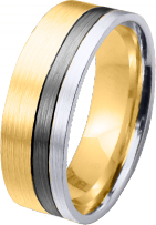 ALIANZA DE BODA DE ORO BICOLOR Y BANDA EN RODIO NEGRO PERFIL PLANO