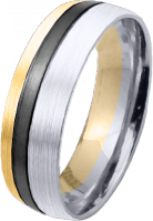 ALIANZA DE BODA DE ORO BICOLOR Y BANDA EN RODIO NEGRO PERFIL CAÑA SUAVE