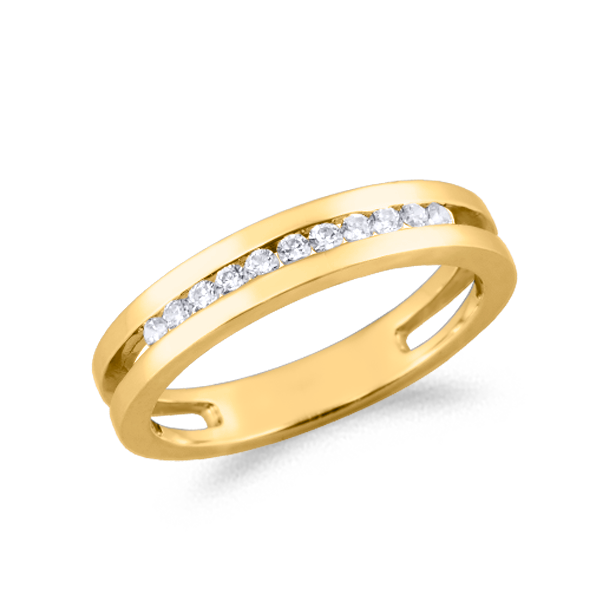 SORTIJA TIPO MEDIA ALIANZA DE ORO DE 18KT CON 11 DIAMANTES DE 0.02ct CADA UNO (TOTAL KILATES 0.22ct )