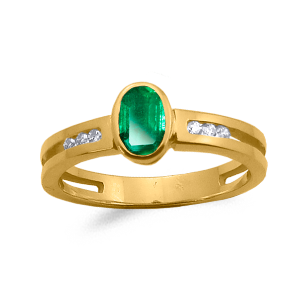 SORTIJA EN ORO DE LEY 18KT CON UNA PIEDRA FINA DE COLOR Y SEIS DIAMANTES DE 0.013ct CADA UNO ENGARZADOS EN EL BRAZO DEL ANILLO