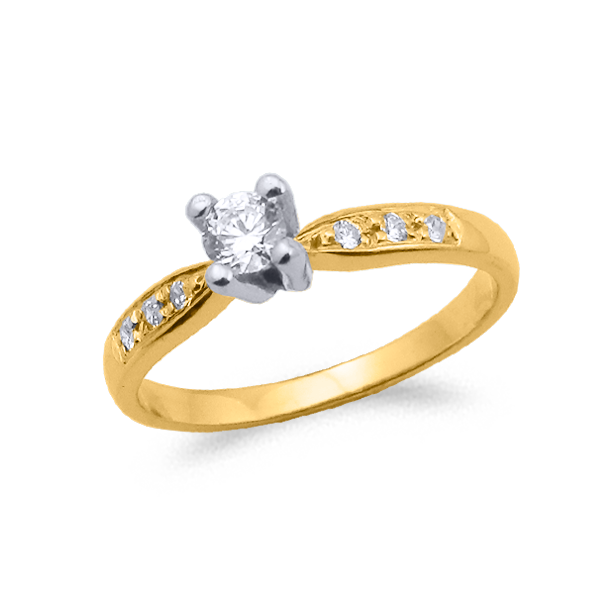 SORTIJA COMPROMISO EN ORO DE LEY 18KT CON UN DIAMANTE CENTRAL DE 0.20ct Y 6 DIAMANTES DE 0.02ct CADA UNO ENGARZADOS EN EL BRAZO DEL ANILLO