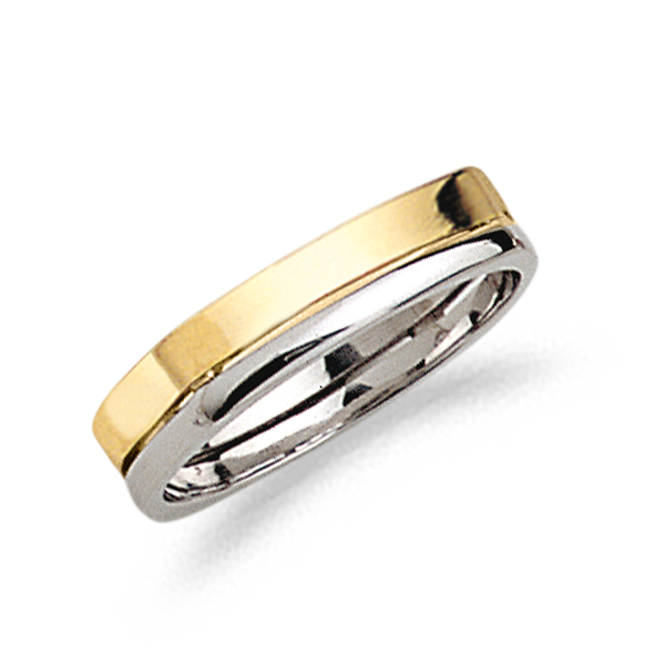 ALIANZA ORO BICOLOR PULIDA Y MATIZADA CALADA DE PERFIL PLANO Y CUADRADA POR FUERA PERO REDONDA POR DENTRO PARA SU COMODIDAD AL LLEVARLA