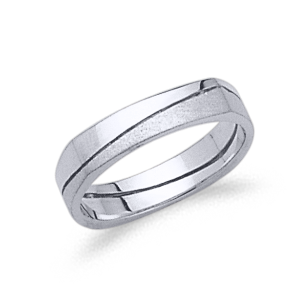 ALIANZA ORO BLANCO CALADA PERFIL PLANO CUADRADA POR FUERA PERO REDONDA POR DENTRO PARA SU COMODIDAD AL LLEVARLA
