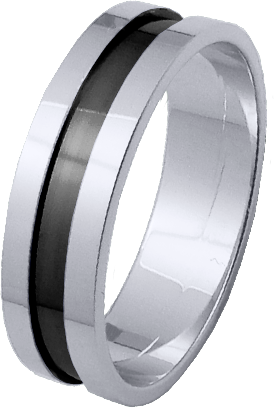 ALIANZA DE PLATA DE LEY 925m RODIADA COMBINADA EN BRILLOY MATE SUAVE DE PERFIL PLANO Y CENTRO CON RODIO NEGRO