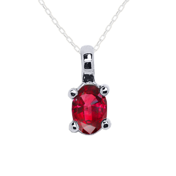 COLGANTE ORO BLANCO DE 18KT CON UN RUBI DE 7mx5m DE FORMA OVALADA ENGARZADO EN CUATRO GRAPAS