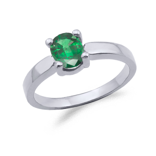 SORTIJA ORO BLANCO DE 18KT CON UNA ESMERALDA OVALADA DE 6mx5m ENGARZADA EN CUATRO GRAPAS