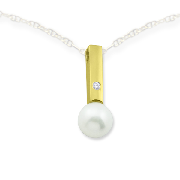 COLGANTE ORO DE LEY 18KT PULIDO CON UN DIAMANTE DE 0.02ct Y UNA PERLA DE 7mm