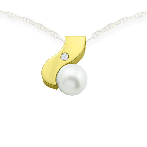 COLGANTE ORO DE LEY 18KT PULIDO CON UN DIAMANTE DE 0.02ct Y UNA PERLA DE 7.5mm