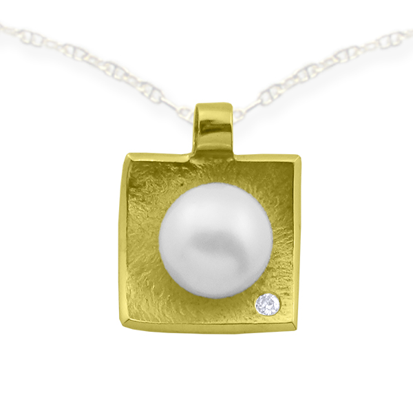 COLGANTE ORO DE LEY 18KT PULIDO CON UN DIAMANTE DE 0.02ct Y UNA PERLA BOTON DE 9.5mm
