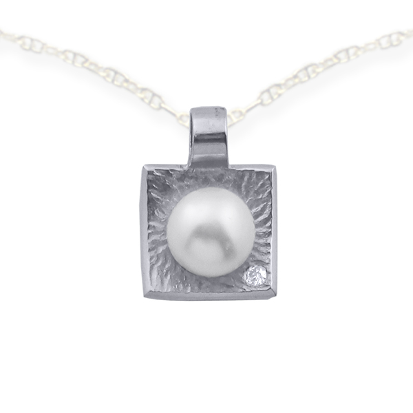 COLGANTE ORO DE LEY 18KT PULIDO CON UN DIAMANTE DE 0.02ct Y UNA PERLA BOTON DE 7.5mm