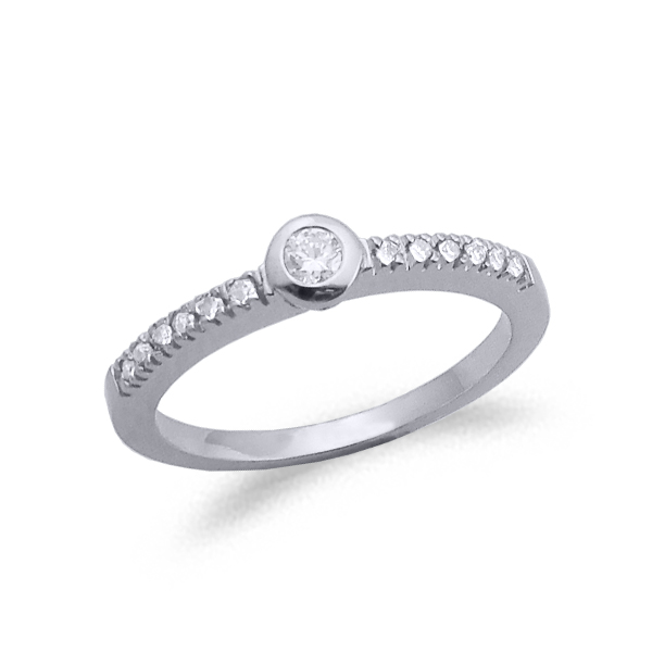 SORTIJA COMPROMISO EN ORO DE LEY 18KT CON UN DIAMANTE CENTRAL DE 0.10ct Y 12 DIAMANTES DE 0.008CT CADA UNO ENGARZADOS EN EL BRAZO DEL ANILLO