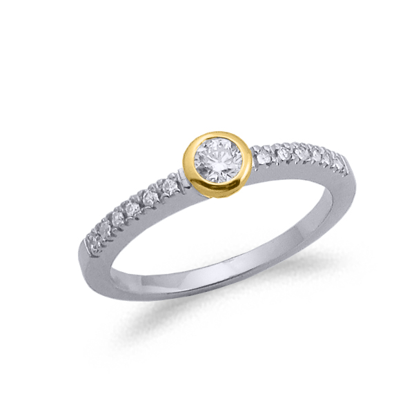 SORTIJA COMPROMISO EN ORO DE LEY 18KT CON UN DIAMANTE CENTRAL DE 0.15ct Y 12 DIAMANTES DE DE 0.008CT CADA UNO ENGARZADOS EN EL BRAZO DEL ANILLO,Mostrar:SI