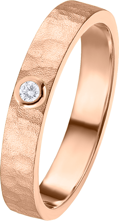 ALIANZA DE BODA EN ORO ROSA DE 18KT PERFIL PLANO DE 3.5m DE ANCHO Y 1.3m DE GROSOR CON TEXTURA MATE Y UN DIAMANTE DE 0.02ct ENGARZADO EN ARO SUPERPUESTO