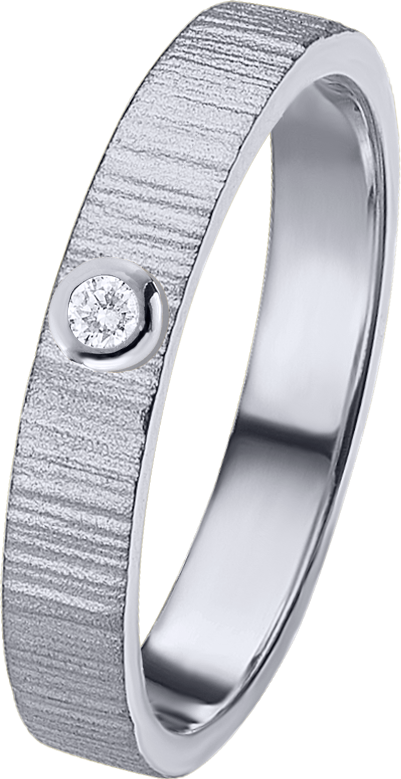 ALIANZA DE BODA EN ORO BLANCO DE 18KT PERFIL PLANO DE 3.5m DE ANCHO Y 1.3m DE GROSOR CON TEXTURA MATE Y UN DIAMANTE DE 0.02ct ENGARZADO EN ARO SUPERPUESTO