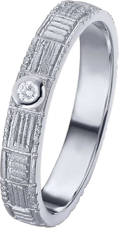 ALIANZA DE BODA EN ORO BLANCO DE 18KT PERFIL CAÑA SUAVE DE 3.5m DE ANCHO Y 1.3m DE GROSOR CON TEXTURA MATE Y UN DIAMANTE DE 0.02ct ENGARZADO EN ARO SUPERPUESTO