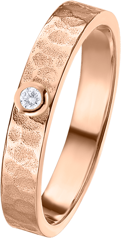 ALIANZA DE BODA EN ORO ROSA DE 18KT PERFIL PLANO DE 3.5m DE ANCHO Y 1.3m DE GROSOR CON TEXTURA SEMI PULIDA Y UN DIAMANTE DE 0.02ct ENGARZADO EN ARO SUPERPUESTO