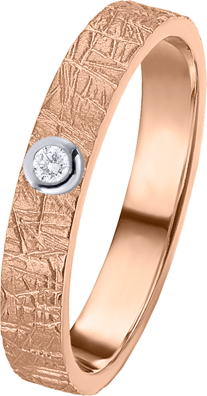 ALIANZA DE BODA EN ORO BICOLOR DE 18KT PERFIL PLANO DE 3.5m DE ANCHO Y 1.3m DE GROSOR CON TEXTURA MATE Y UN DIAMANTE DE 0.02ct ENGARZADO EN ARO SUPERPUESTO