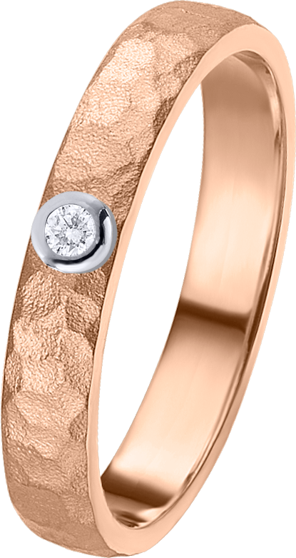 ALIANZA DE BODA EN ORO BICOLOR DE 18KT PERFIL CAÑA SUAVE DE 3.5m DE ANCHO Y 1.3m DE GROSOR CON TEXTURA MATE Y UN DIAMANTE DE 0.02ct ENGARZADO EN ARO SUPERPUESTO