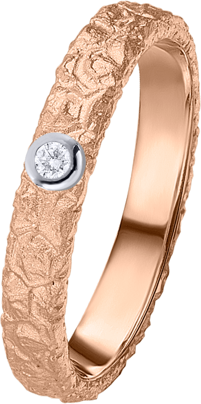 ALIANZA DE BODA EN ORO BICOLOR DE 18KT PERFIL CAÑA SUAVE DE 3.8m DE ANCHO Y 1.3m DE GROSOR CON TEXTURA MATE Y UN DIAMANTE DE 0.02ct ENGARZADO EN ARO SUPERPUESTO