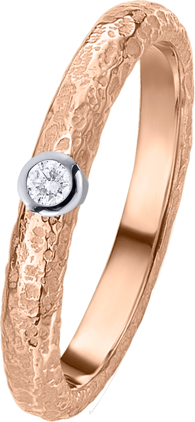 ALIANZA DE BODA EN ORO BICOLOR DE 18KT PERFIL SEMI REDONDO DE 2.8m DE ANCHO Y 1.8m DE GROSOR CON TEXTURA SEMI PULIDA Y UN DIAMANTE DE 0.03ct ENGARZADO EN CHATON INCRUSTADO EN EL ARO