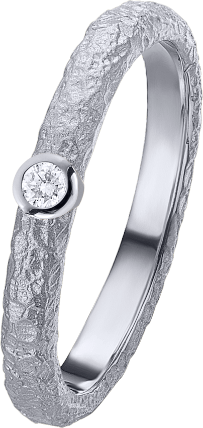 ALIANZA DE BODA EN ORO BLANCO DE 18KT PERFIL SEMI REDONDO DE 2.8m DE ANCHO Y 1.8m DE GROSOR CON TEXTURA MATE Y UN DIAMANTE DE 0.03ct ENGARZADO EN CHATON INCRUSTADO EN EL ARO