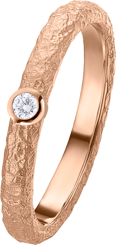 ALIANZA DE BODA EN ORO ROSA DE 18KT PERFIL SEMI REDONDO DE 2.8m DE ANCHO Y 1.8m DE GROSOR CON TEXTURA MATE Y UN DIAMANTE DE 0.03ct ENGARZADO EN CHATON INCRUSTADO EN EL ARO