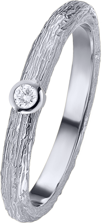 ALIANZA DE BODA EN ORO BLANCO DE 18KT PERFIL SEMI REDONDO DE 2.8m DE ANCHO Y 1.8m DE GROSOR CON TEXTURA SEMI PULIDA Y UN DIAMANTE DE 0.03ct ENGARZADO EN CHATON INCRUSTADO EN EL ARO