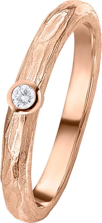 ALIANZA DE BODA EN ORO ROSA DE 18KT PERFIL SEMI REDONDO DE 2.8m DE ANCHO Y 1.8m DE GROSOR CON TEXTURA SEMI PULIDA Y UN DIAMANTE DE 0.03ct ENGARZADO EN CHATON INCRUSTADO EN EL ARO