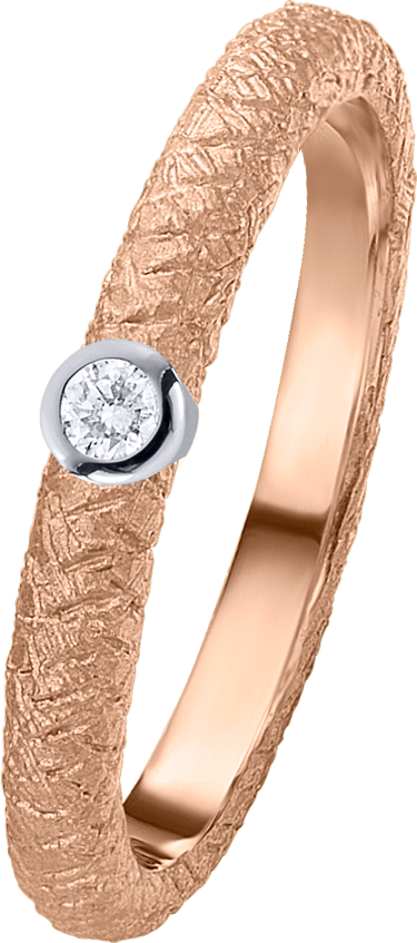 ALIANZA DE BODA EN ORO BICOLOR DE 18KT PERFIL SEMI REDONDO DE 2.8m DE ANCHO Y 1.8m DE GROSOR CON TEXTURA MATE Y UN DIAMANTE DE 0.03ct ENGARZADO EN CHATON INCRUSTADO EN EL ARO