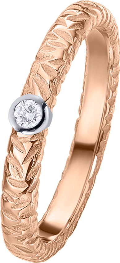 ALIANZA DE BODA EN ORO BICOLOR DE 18KT PERFIL SEMI REDONDO DE 2.8m DE ANCHO Y 1.8m DE GROSOR CON TEXTURA SEMI PULIDA Y UN DIAMANTE DE 0.03ct ENGARZADO EN CHATON INCRUSTADO EN EL ARO
