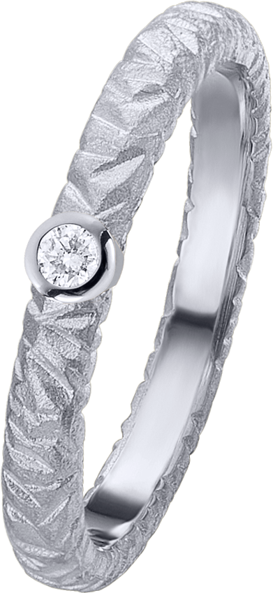 ALIANZA DE BODA EN ORO BLANCO DE 18KT PERFIL SEMI REDONDO DE 2.8m DE ANCHO Y 1.8m DE GROSOR CON TEXTURA MATE Y UN DIAMANTE DE 0.03ct ENGARZADO EN CHATON INCRUSTADO EN EL ARO
